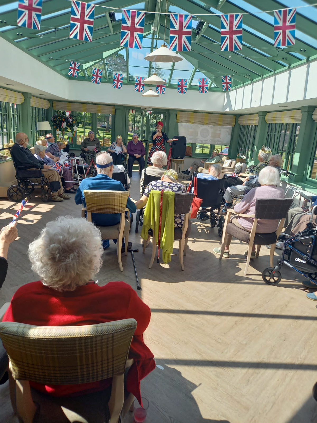 The second event was held on Thursday 2nd June. Singer Sharon Cardno came to entertain our residents singing a number of popular songs our residents could dance and sing along to, finishing with the National Anthem. Both residents and staff spoke abut what a brilliant day it was!