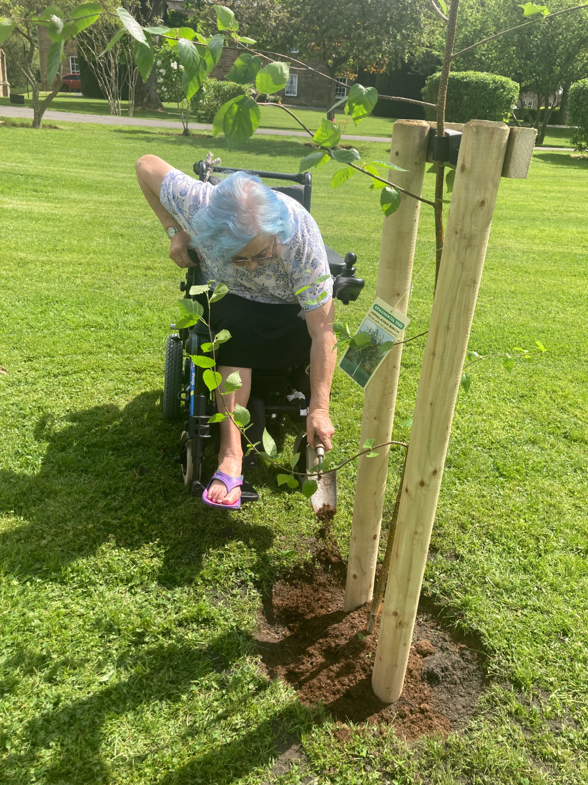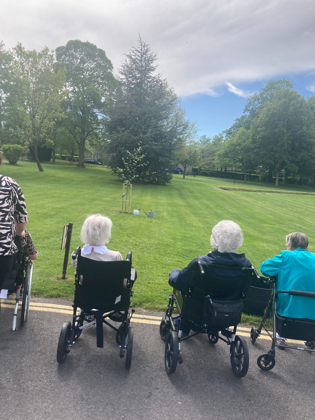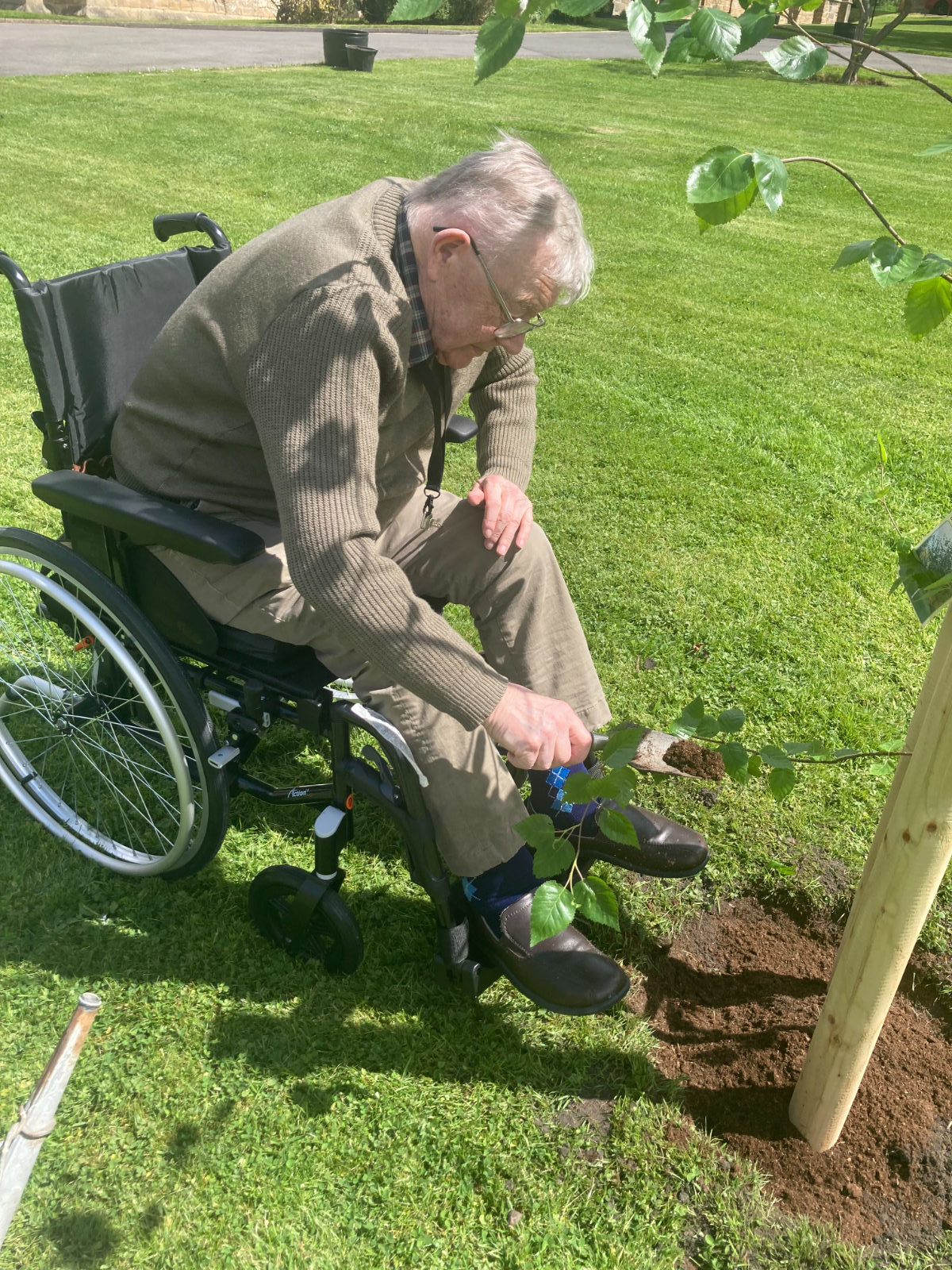 Afterwards, some residents of Beddell House sat in the sunshine and Mr & Mrs Thomson, spoke about meeting the Queen when she honoured their son Andrew with an OBE at Windsor Castle. Another resident, Mrs Chiverton was also in the company of the Queen at the garden party in Buckingham Palace grounds. Their thoughts on planting the tree were, ‘it was the least we could all do to celebrate her Majesty’s Platinum Jubilee as she had devoted her life to the people of the commonwealth and the whole of the United Kingdom.’