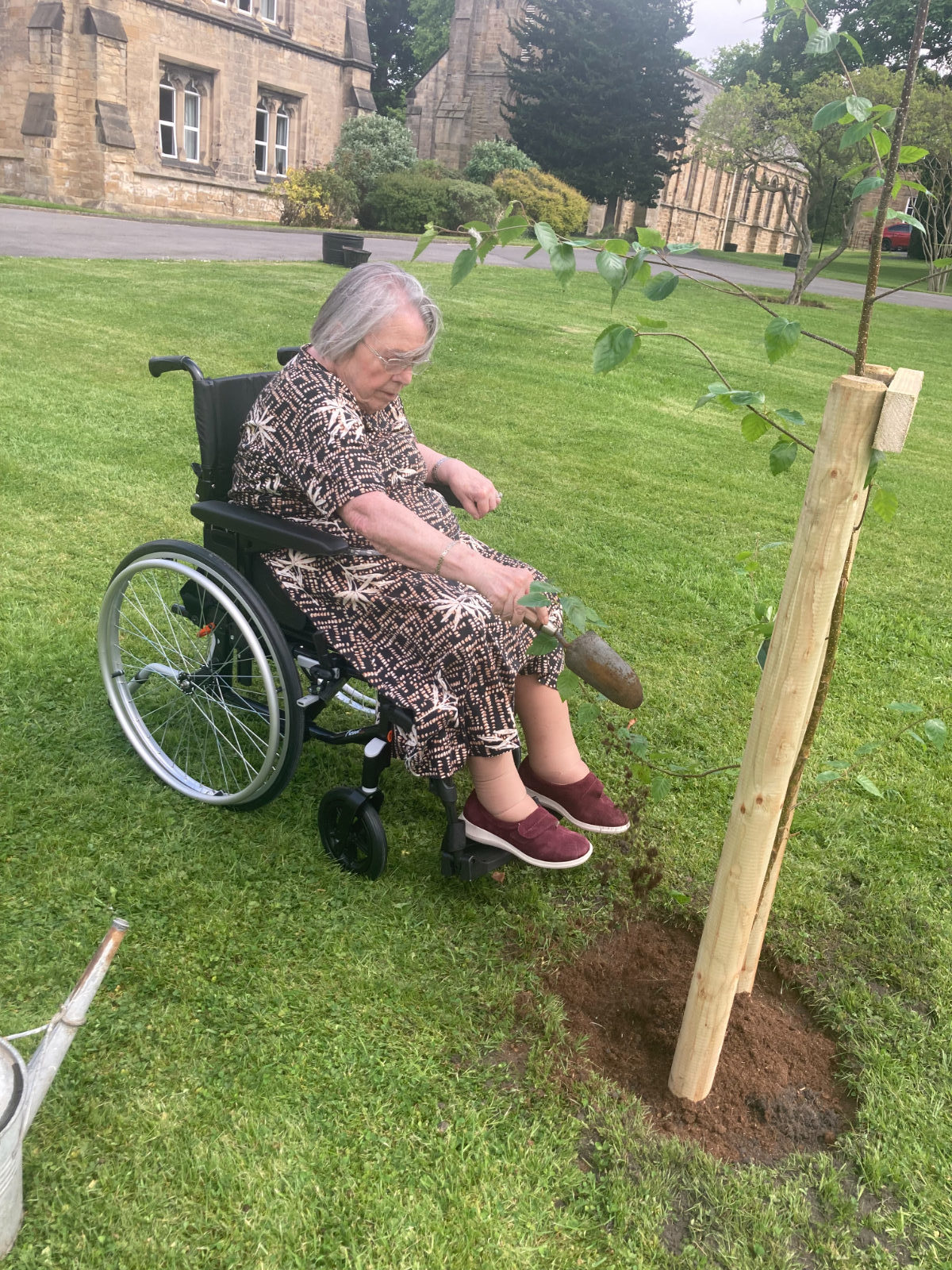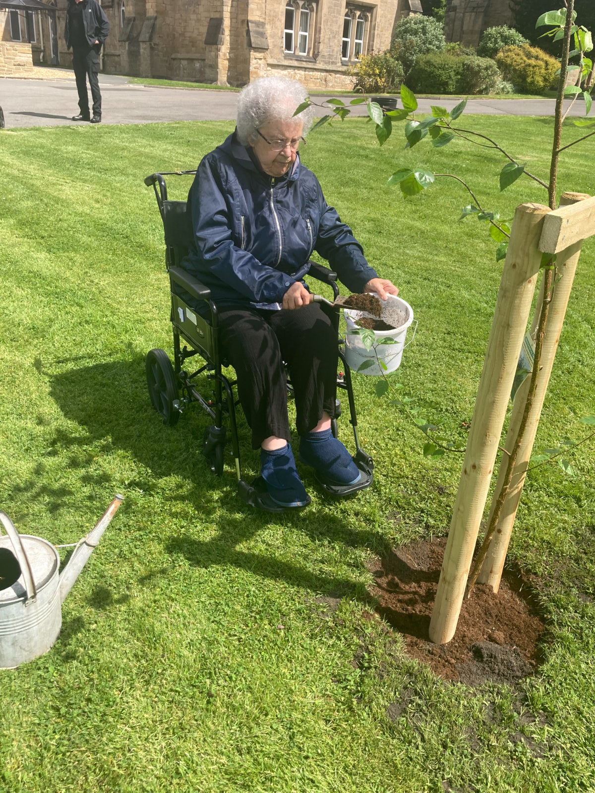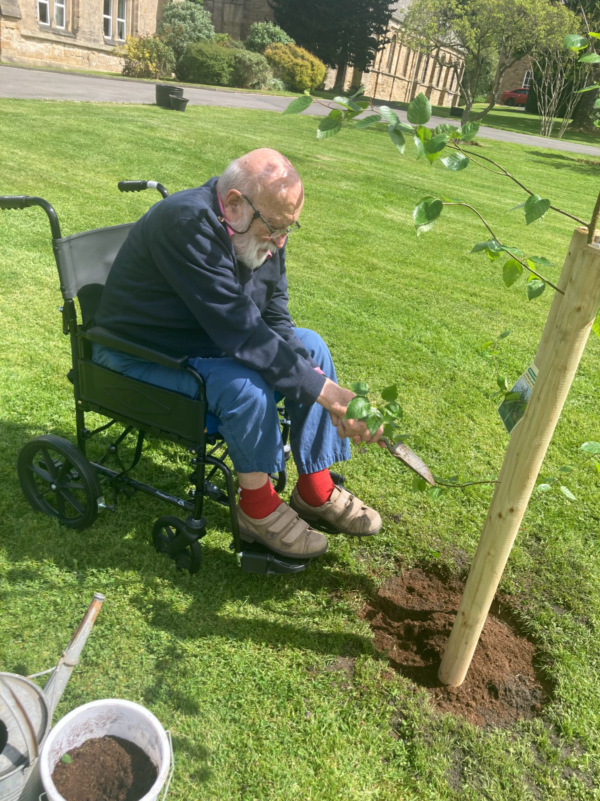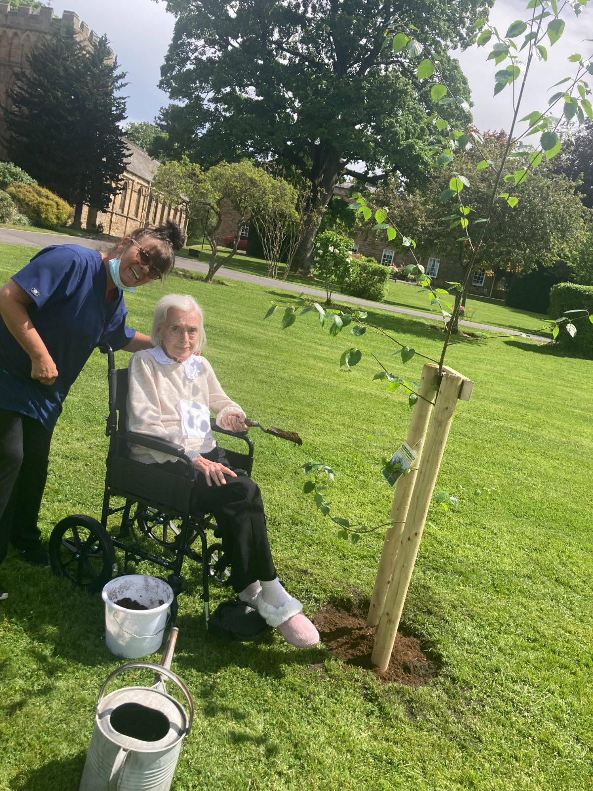 Afterwards, some residents of Beddell House sat in the sunshine and Mr & Mrs Thomson, spoke about meeting the Queen when she honoured their son Andrew with an OBE at Windsor Castle. Another resident, Mrs Chiverton was also in the company of the Queen at the garden party in Buckingham Palace grounds. Their thoughts on planting the tree were, ‘it was the least we could all do to celebrate her Majesty’s Platinum Jubilee as she had devoted her life to the people of the commonwealth and the whole of the United Kingdom.’